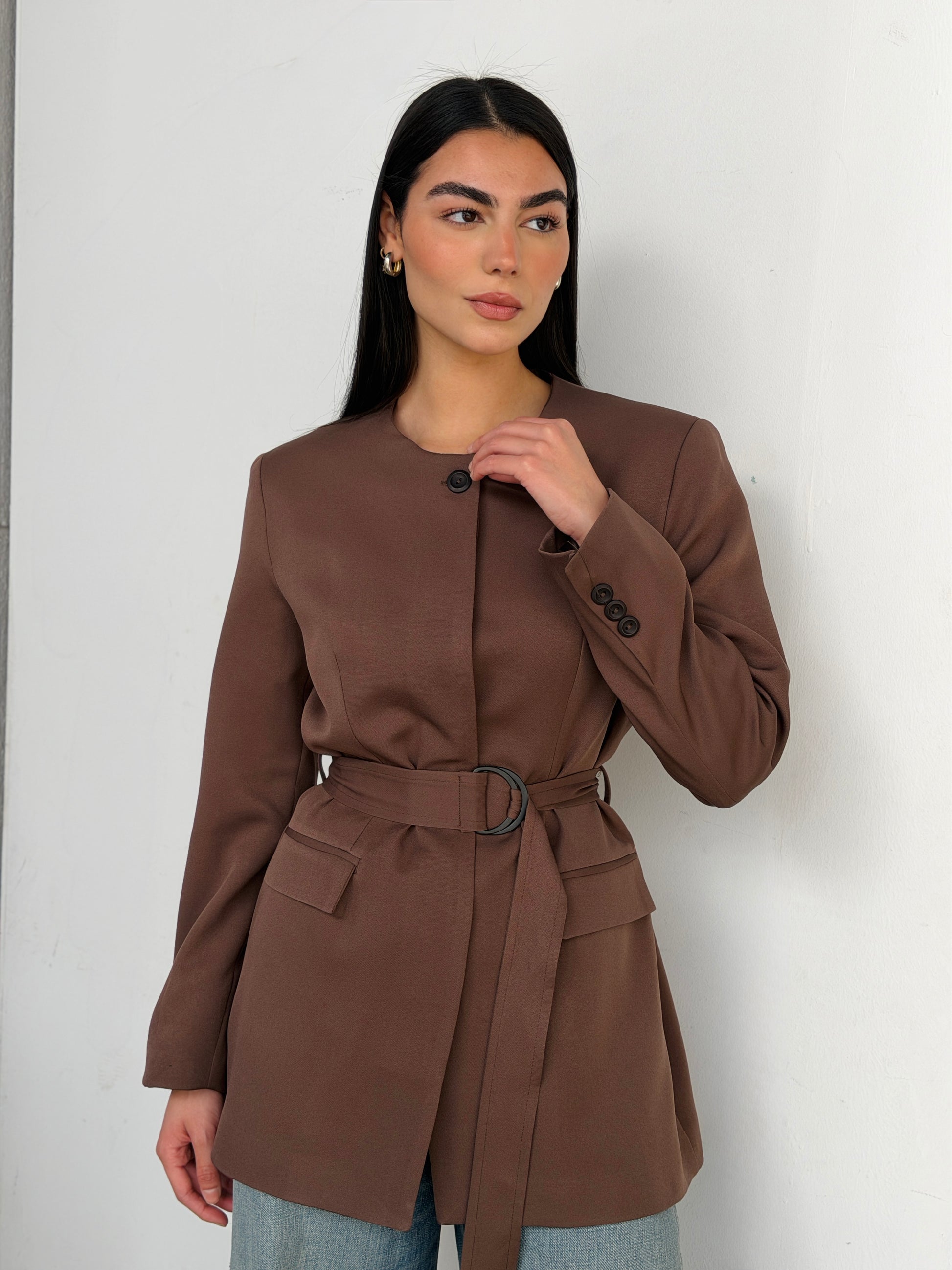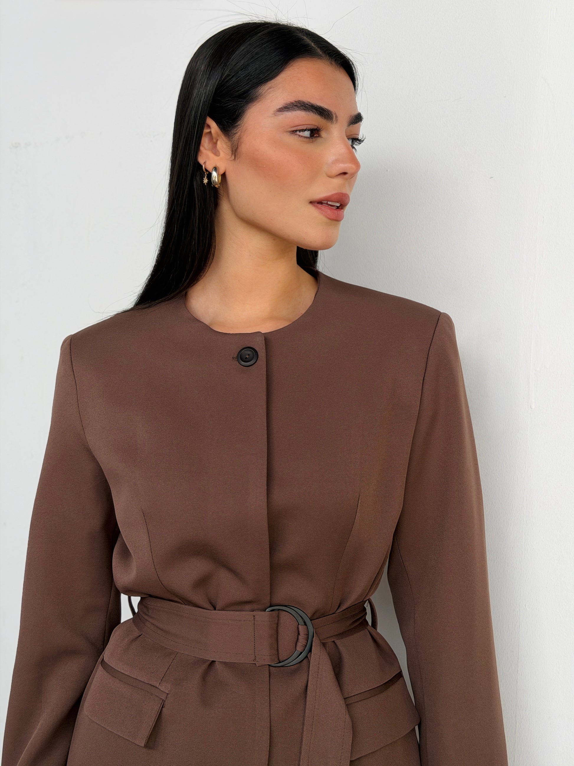 Belted Tailored Blazer in Brown