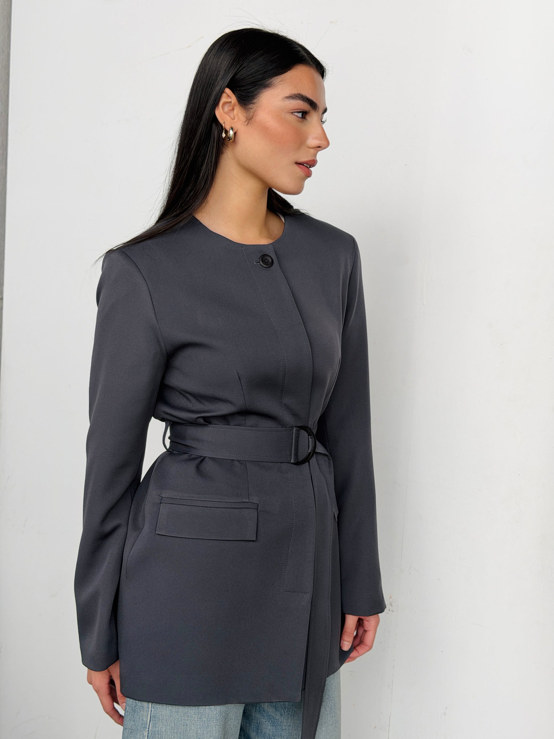 Belted Tailored Blazer in Gray