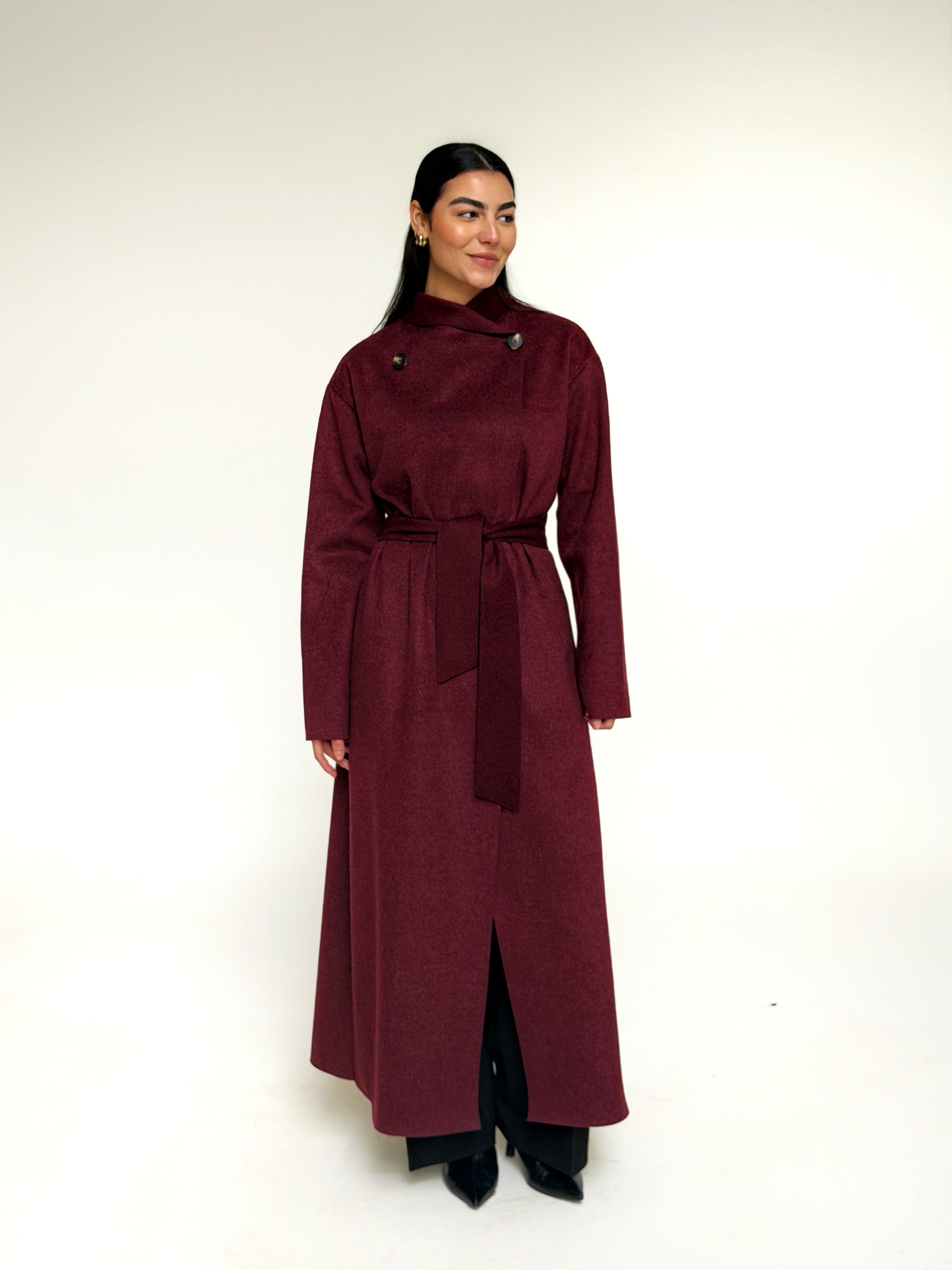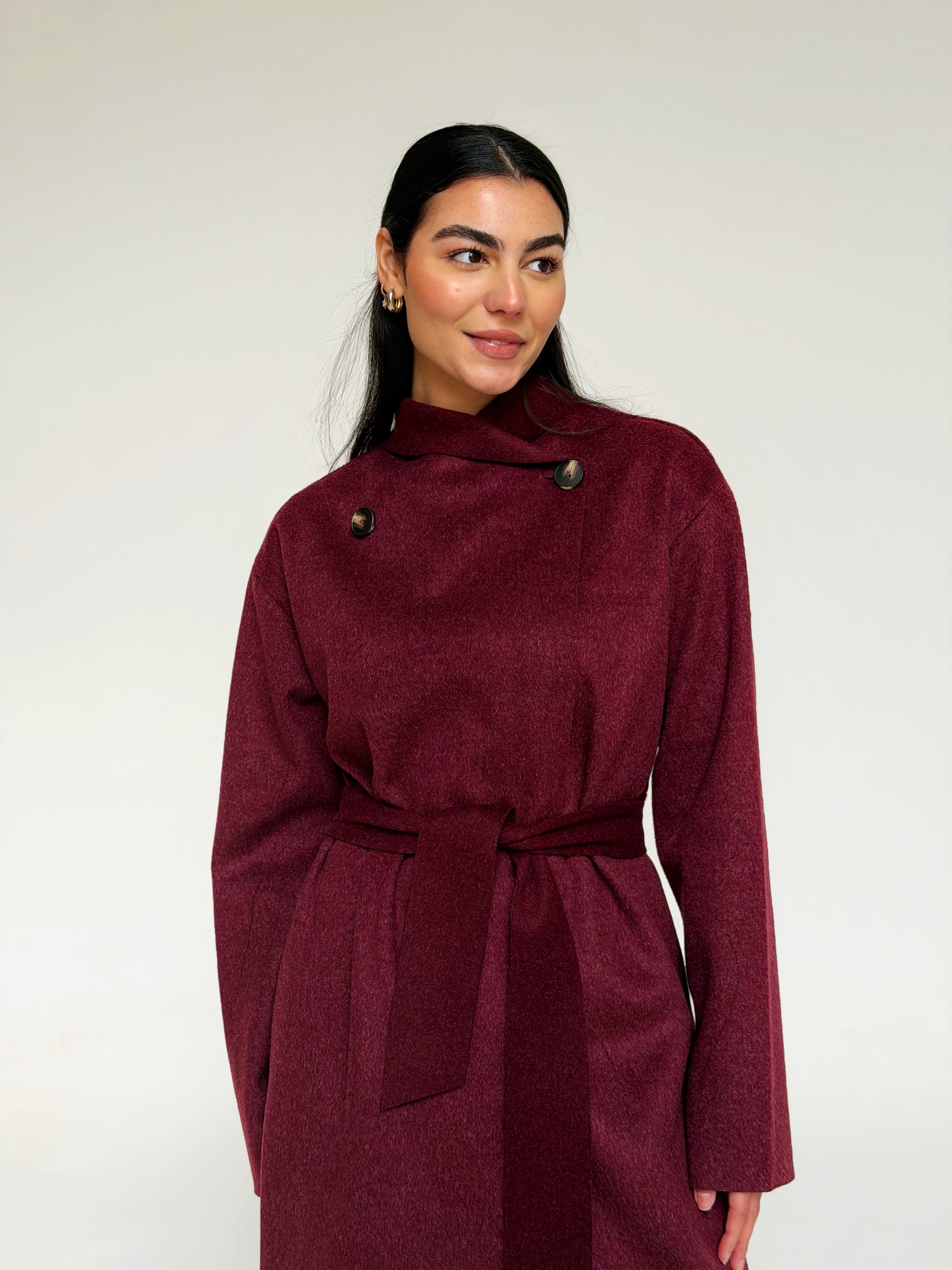 Classy wool coat in Burgundy