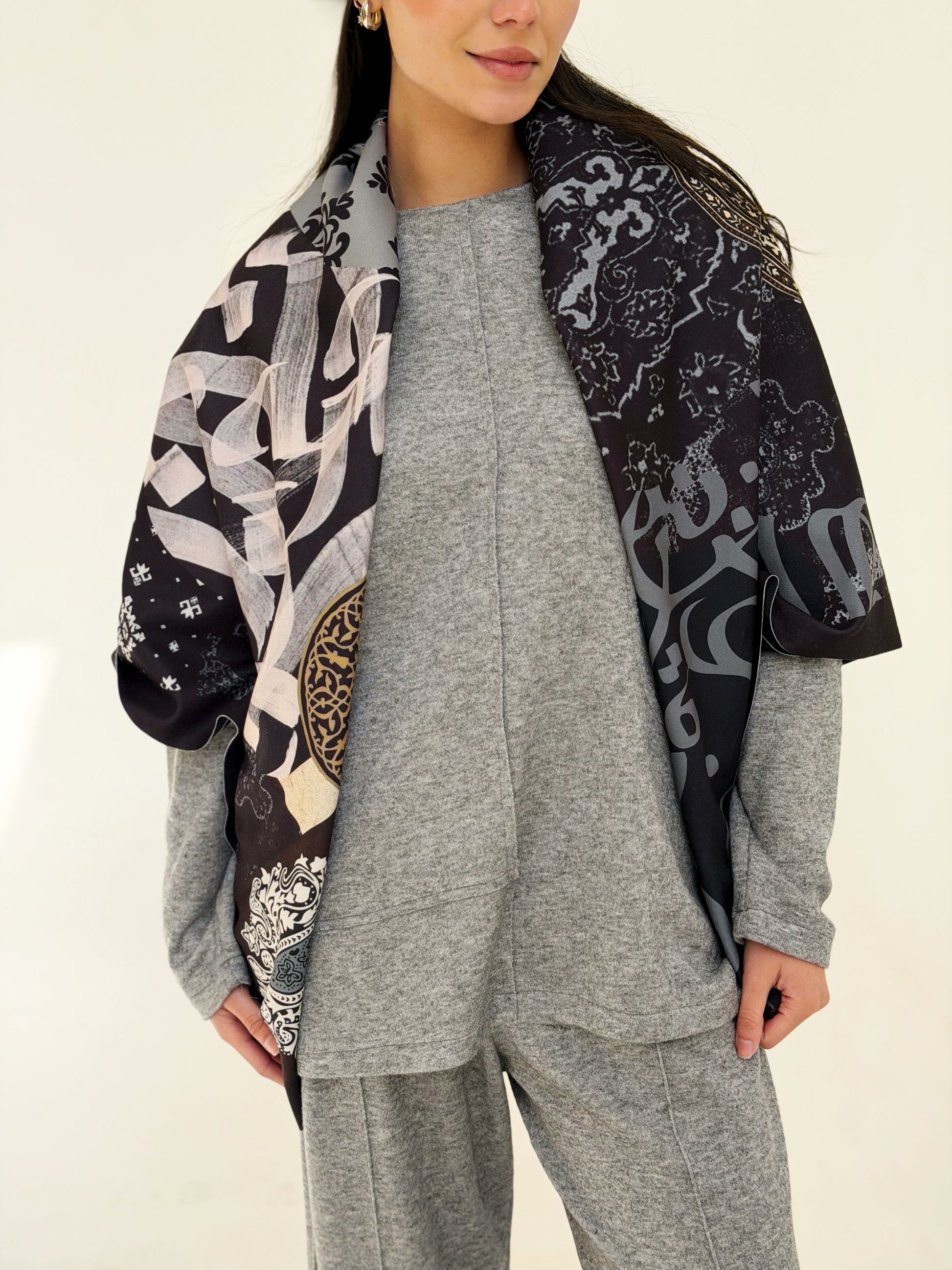 ink wool Scarf square
