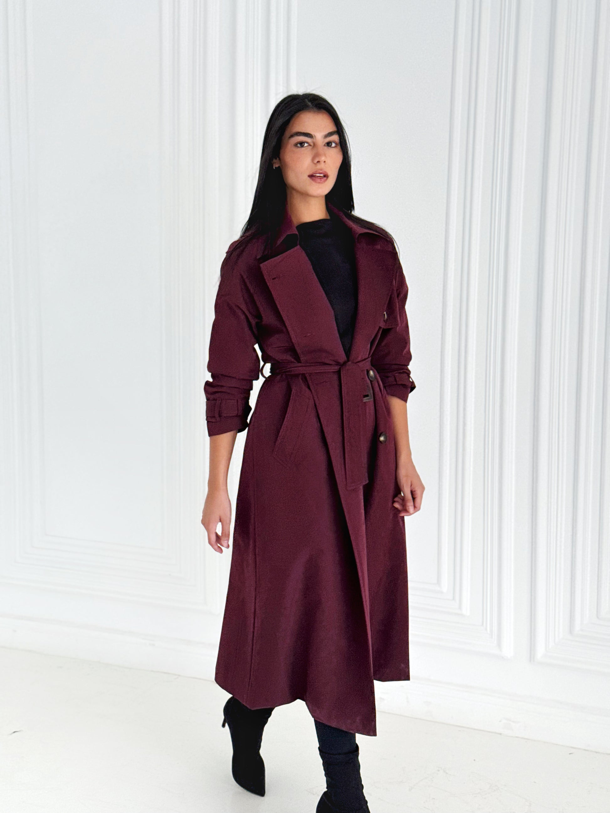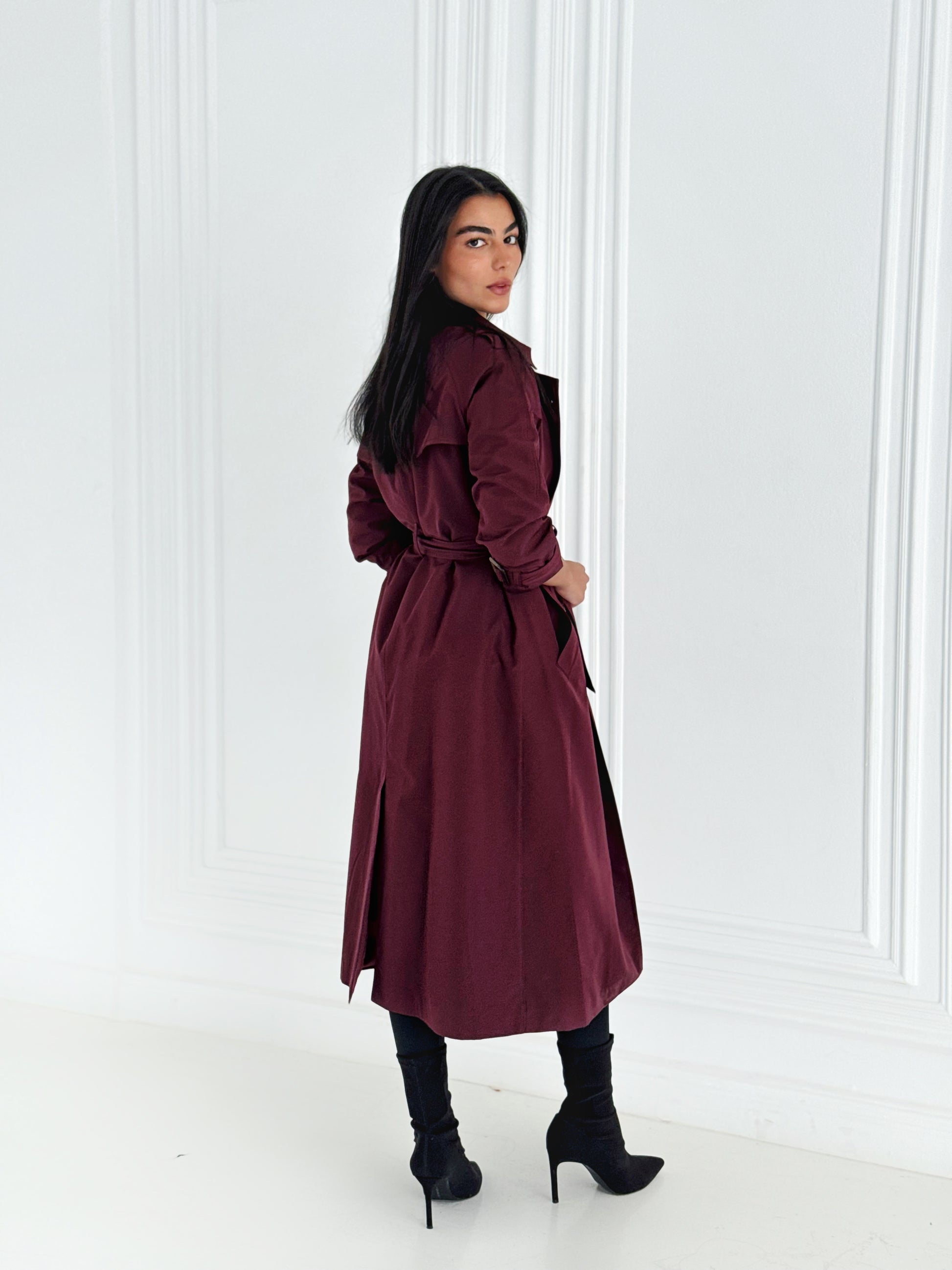 Statement Trench Coat In Burgundy