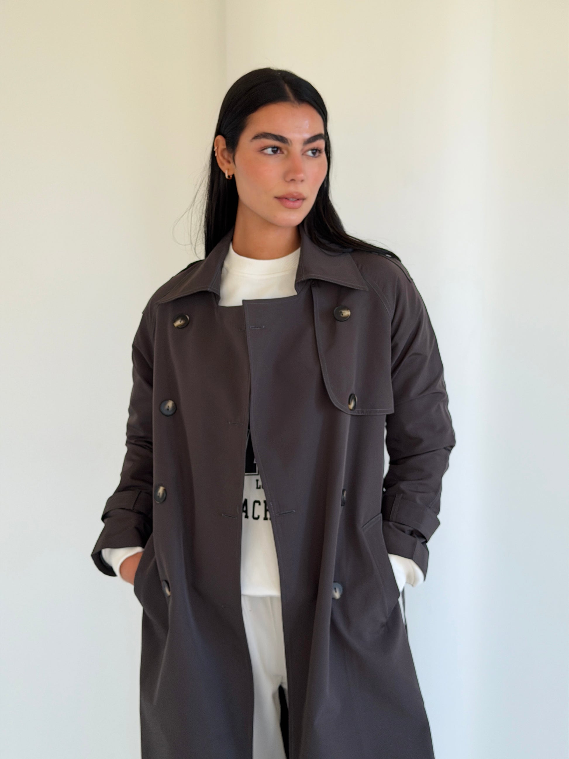 Statement Trench Coat In Dark Gray