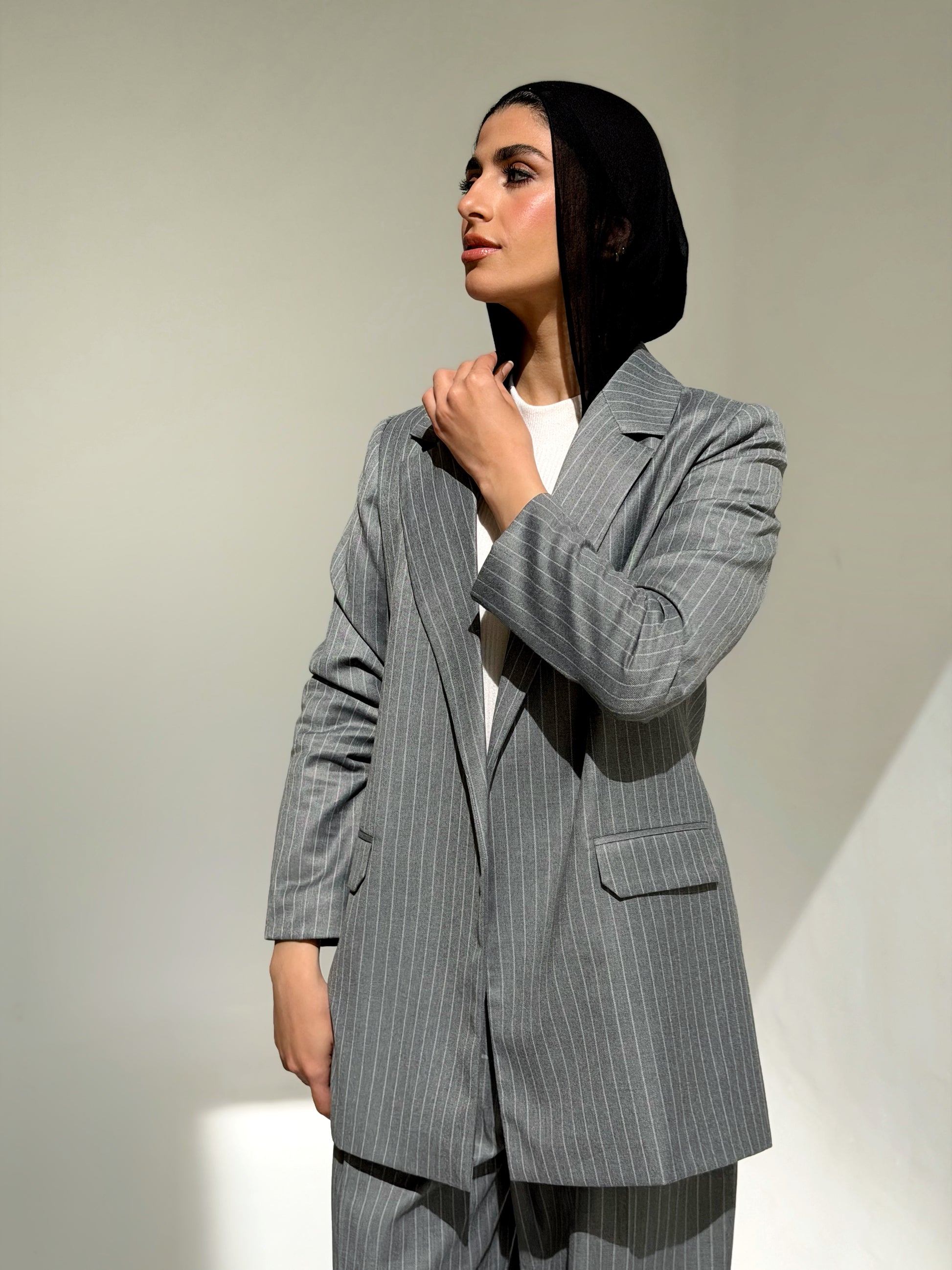 The Tailored Striped blazer in Light Gray