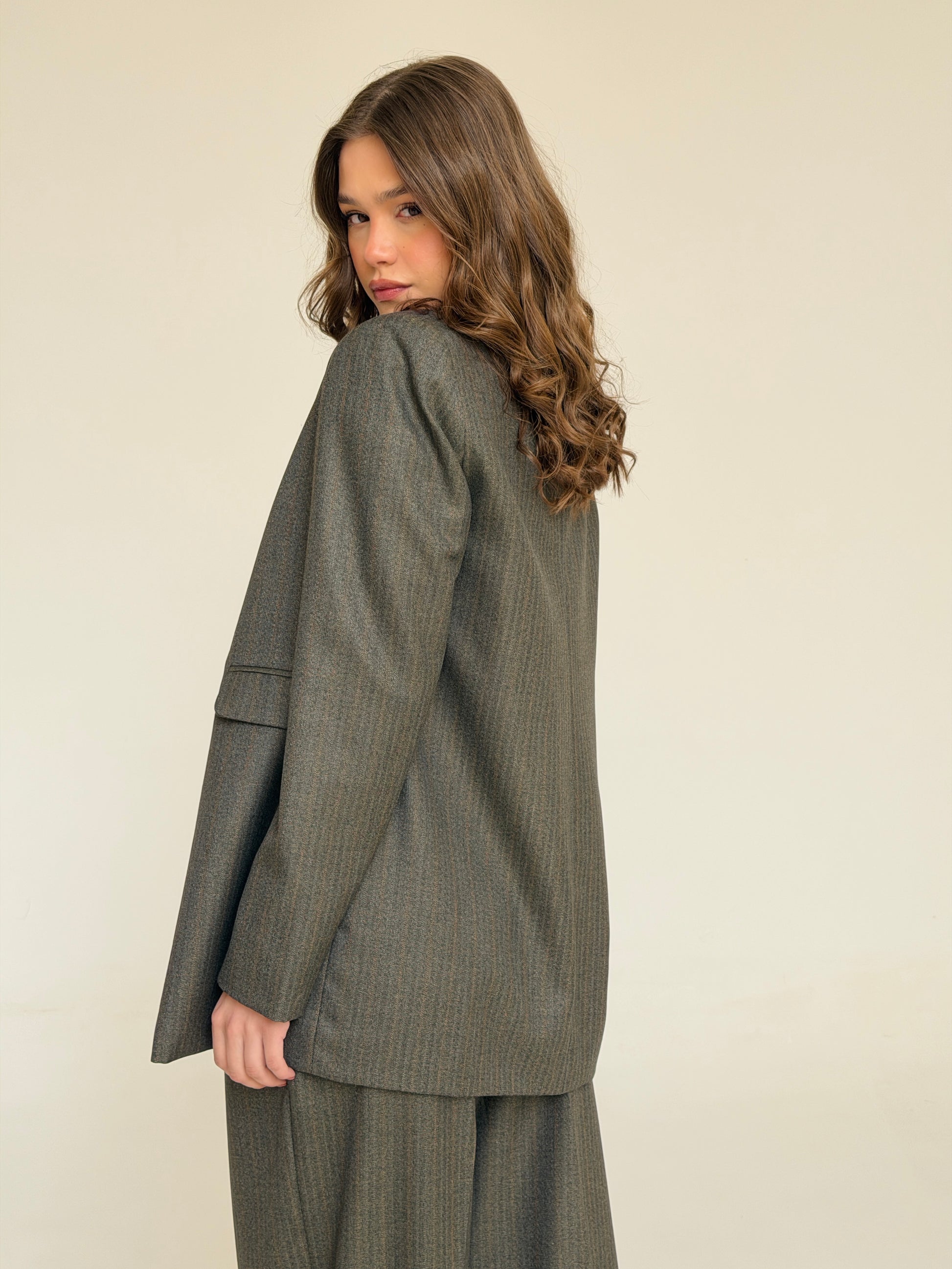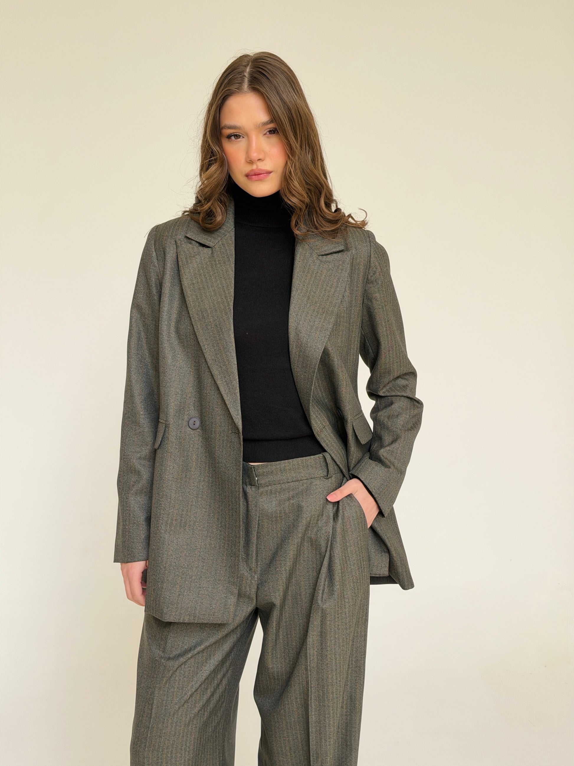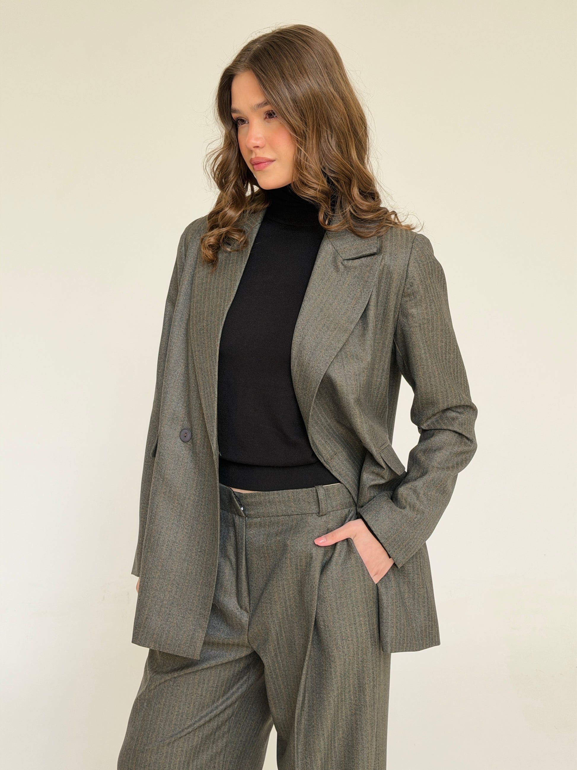 The Tailored Striped Blazer in cafe