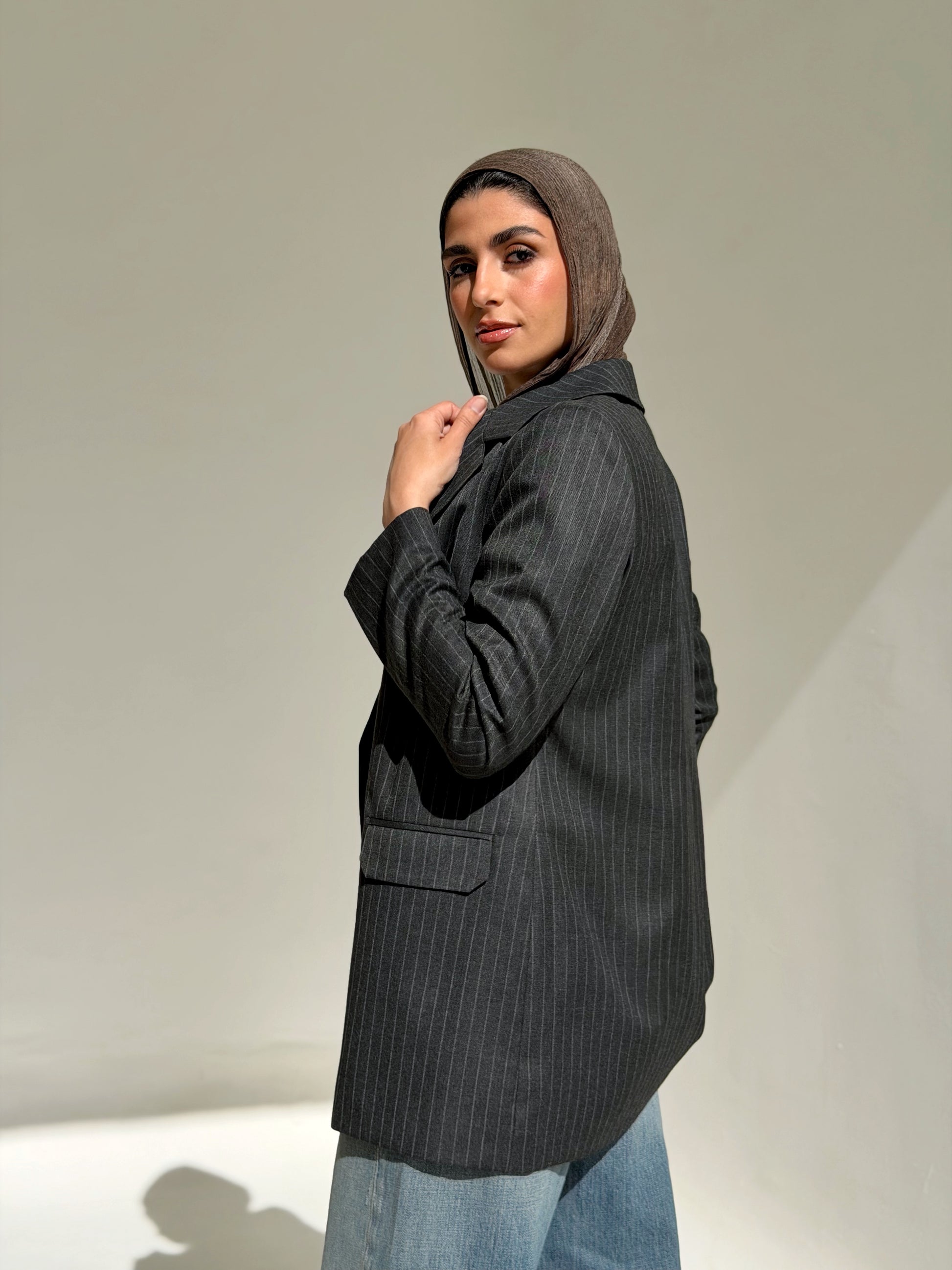The Tailored striped blazer in dark Gray